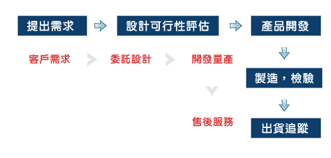 當客戶提出產品需求,我們的產品開發團隊會根據客戶提供的圖面,樣品做專業的開發評估。從原料選擇,設計可行性事先掌握產品開發的概念,進而導入量產計畫,裝配,檢驗,到成品出貨。為因應市場需求瞬息萬變,開發團隊必須極度有效率的完成開發作業。